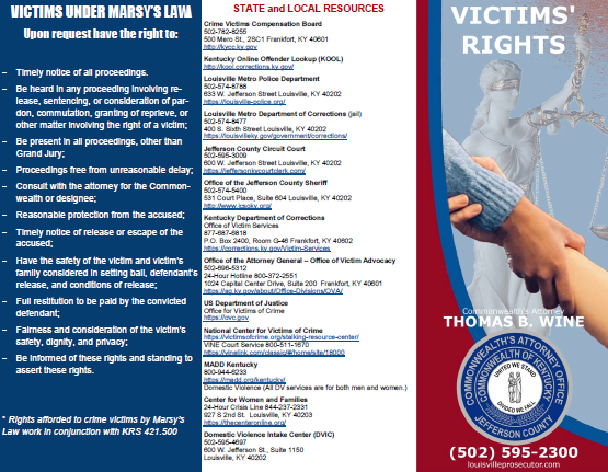 The 2020 Kentucky Constitutional Amendment referred to as Marsy’s Law provides the following rights to you as a crime victim:
